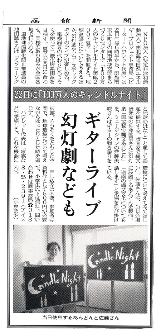 2007年6月20日函館新聞に掲載